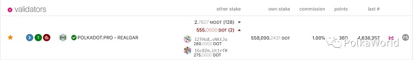 佣金(commission):佣金就是提名人支付给验证人的 “抽成”,一般来说佣金越低越好。