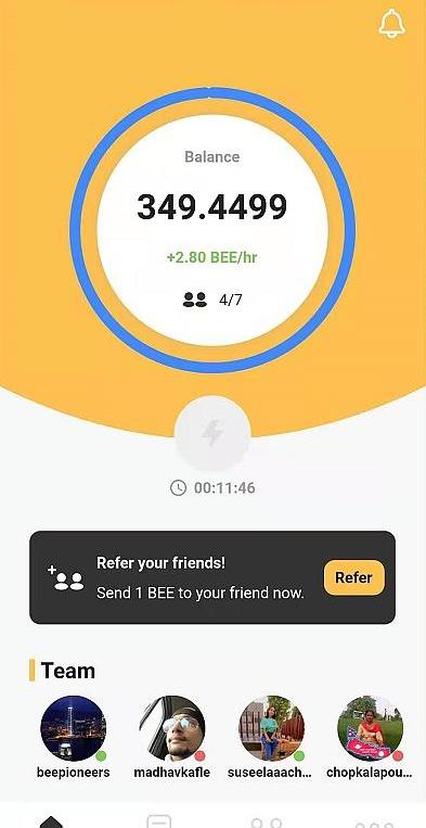1、和pi币一样的,注册送一个Bee币,每天24小时点一次闪电即可