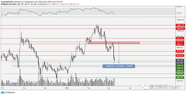 大家可能会关心,比特币价格是否会一下子就下跌到7300美元至7500美元的水平。目前来说,因为价格已经出现了如此大幅的下跌,所以。预计可能会出现小幅的反弹,应该会停留在7800美元的支撑位,并通过该支撑位进一步向上试探。