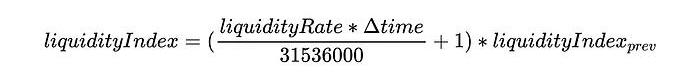 现在我们了解了aToken背后的逻辑,但我们仍然需要解决liquidityIndex的工作原理之谜。在下面的示例中,liquidityIndex可以定义为一定时间内储备积累的利息: