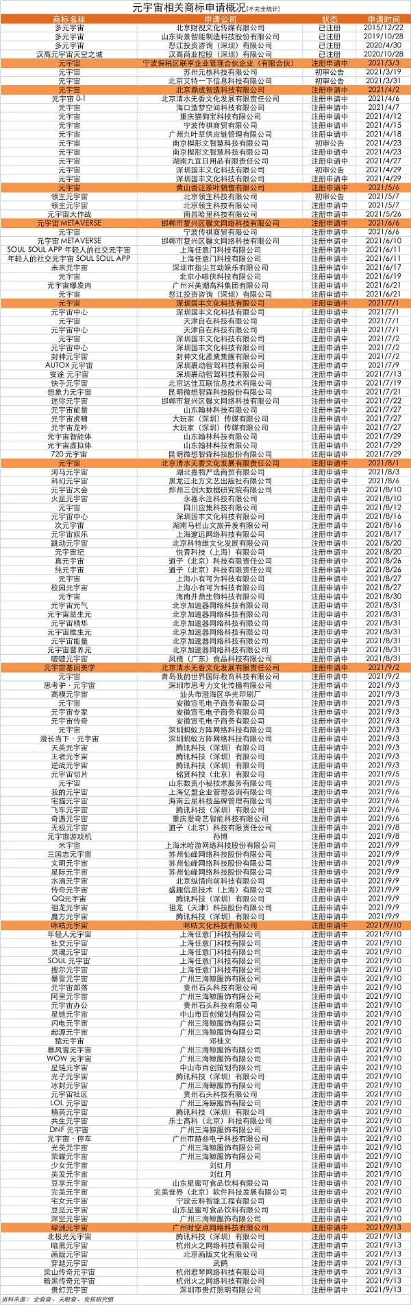 从上述图标中我们不难发现,2021年是“元宇宙”相关商标申请注册的爆发期,尤以9月份更为集中。