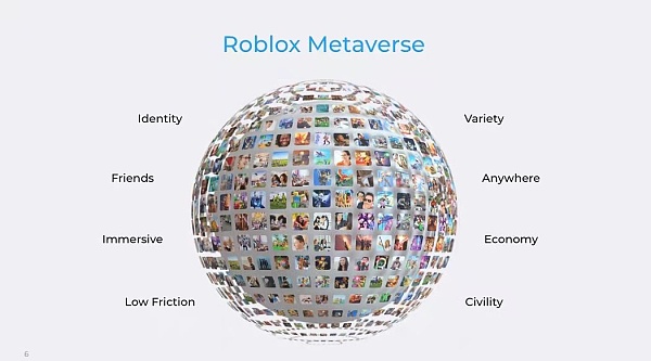 而Roblox对Metaverse/元宇宙产品的定义中,包含了八大要素:身份(虚拟身份)、朋友(社交)、沉浸感、低延迟、多元化、随地、经济系统和文明。