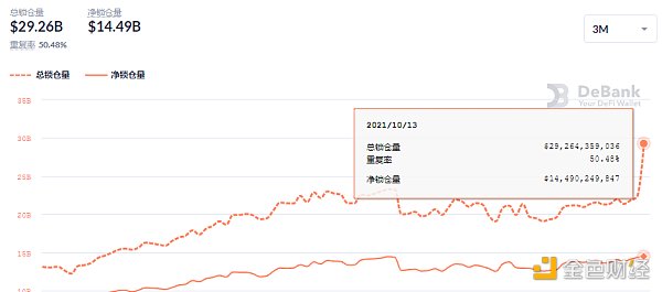 Ethereum链上DeFi锁定资产前十排名及锁仓量,数据来源:Debank