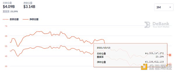 DeFi项目锁定资产前十排名及锁仓量,数据来源:Debank