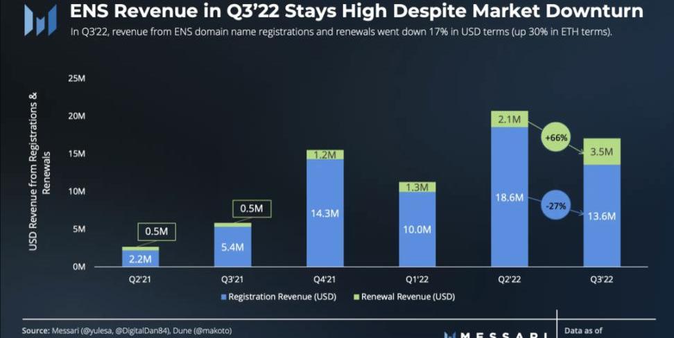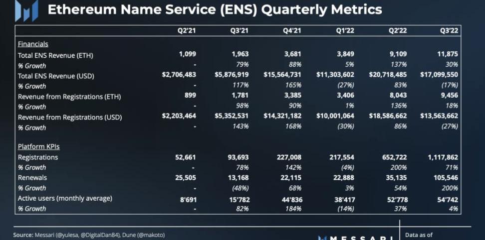 ENS季度绩效可以根据ENS域名使用情况和应计收入来衡量。使用量