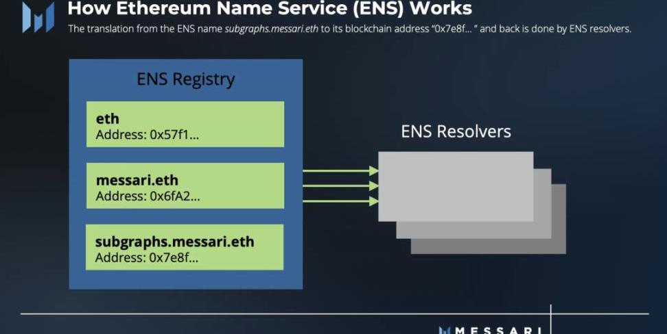 处理区块链地址很容易出错。这是因为区块链地址由一系列字母数字字符组成,例如「0x57f1……」对于我们来说,这绝不是直观的。以太坊域名服务(ENS)允许用户通过人类可读的域名与区块链地址进行交互。ENS提供了一个用户友好的解决方案,将区块链地址映射到易于复制的域名。与普通的Web域名相比,ENS域名:可以用作支付网关——例如,可以向sassal.eth汇款,而不是输入或复制粘贴Sassal的十六进制地址。不能中止,也不能删除它们的内容。