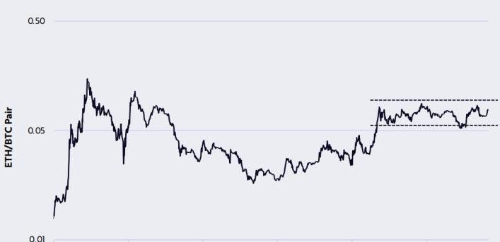 ARK观点:看涨ETH/BTC币对的交易价格保持在近两年形成的交易区间内。ETH本月跑赢比特币12.28%,接近该交易区间的顶部。ETH的相对强势表现显示加密市场的风险偏好上升。三、比特币VS股票