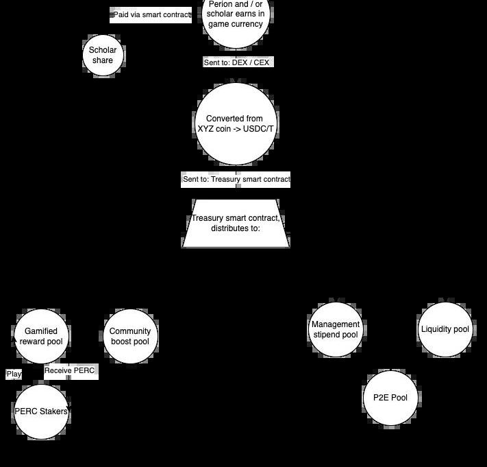 GameFi的持续火热,也催了一大批伴生的公会项目。近期,一个名为Perion的项目备受关注。1月1日,Perion官方宣布完成860万美元融资,Alameda与Framework联合领投,PanteraCapital、Gemini、TheSpartanGroup、JumpCrypto、IOSG、Synthetix等参投。Perion号称是一个去中心化的自治组织(DAO),主要提供购买、租赁和管理NFT资产等服务,以帮助玩家在游戏中赚取收益。其愿景是创建一个由游戏玩家创立、拥护和拥有的去中心化组织,打造未来经济的英雄,为发展中国家的人提供新的创收方式。虽然以DAO作为包装,但其本质上还是一个游戏公会。“我们聘请游戏玩家作为独立承包商,让他们能够利用他们的技能来赚取丰厚的报酬。我们建立在一个由全球排名的游戏玩家、熟练的开发人员和金融专业人士组成的社区之上。”Perion在官网中如是说。Perion的成立主要得益于Axieinfinity。其创始贡献者AmosWhitewolf在2021年初开始玩Axieinfinity,而后迅速上升到全球PVP排行榜的第一名。在此基础上,Perion团队开始创建一个组织,培训、教育新的游戏玩家,并通过「老玩家+新玩家」的组合帮助新手进步。根据其官网数据,在AxieInfinity生态系统中,Perion学者获得了巨大的回报,在2021年9月,整个团队平均每日学者收入为288SLP,是75个竞争对手目标基准的3.84倍;菲律宾Perion学者的年收入,是菲律宾全国平均水平的195%。再者,Perion还开发了学者管理系统,包括用于学者支付的智能合约、集成的绩效跟踪软件、MOBA凭证验证系统以及用于Axies基因匹配、定价和育种的自动化系统,进一步帮助玩家提升收益。需要注意的是,Perion与学者之间的收入分成为50%,相对较高,其他公会只会拿走学者收入的30%。代币方面,Perion原生代币是PerionCredits(PERC),主要用于项目治理,并成为整个生态的激励代币;总量1亿个,计划于今年1月21日进行IDO,而后上线中心化平台。需要说明的是,Perion的治理主要由两个不同的DAO结构组成,分别是CoreDAO、GameDAO,协同工作以满足组织需求,如下所示: