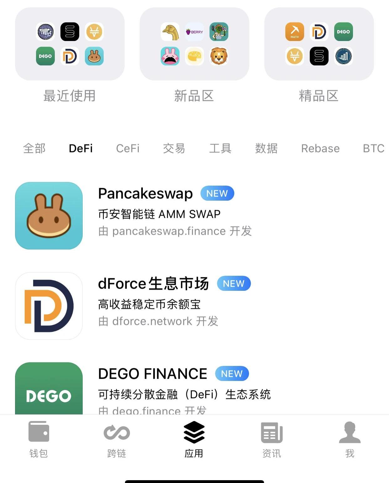CAKE一骑绝尘的走势,图源:coingecko.com相信和我一样踏空的朋友还有不少,比如只买主流币不买DeFi的,买DeFi只买以太坊上的……总而言之,问题出在我们对于新公链及其生态项目尚缺乏想象力和包容度。我们可能会有这样一种成见,即新链上的项目无非是照着以太坊复制,而一些国内团队的「复制版」往往还被冠以「土狗项目」的戏谑,所以除了勤于耕田的大户们,很少有小散真正地使用它。然后,BNB和CAKE等一众公链币和新DeFi就用涨幅来做了番「市场教育」。也许,我们确实需要用开放的、发展的眼光去看待这些生态了。那么,像BSC这样的新生态,真的是新机会,还是只是下一个EOS,扑棱几下就又归于沉寂了呢?Odaily星球日报认为,BSC确实蕴含机会,值得我们早做关注。从BscScan的统计数据看,在过去一周,BSC新上线的收益农耕项目就有11个,而在过去一段时间,BSC还吸引了CREAM、BAND、DODO等以太坊上不错的项目。究其原因,BSC快速的开发,配以币安强大的资金和用户扶持,对于新的项目甚至不少其他链上的成熟项目都颇具吸引力。另外,其兼容以太坊,开发门槛、迁移成本比较低,交易速度快、交易费用低廉,亦适合作为新项目的试验场。为此,Odaily星球日报在今日正式推出「BSC币安智能链玩转指南」系列文章,为我们认识新生态提供一个概览窗口。本篇,我们将聚焦于BSC的钱包、入口和打开方式。如果有朋友还不太了解BSC,可以跳转看下我们做的这篇简述:《我从「空气换大饼」中看到的是,币安智能链何时有这么多资产和玩家了?》BSC的打开方式:拥有BNB、了解BSCBridge