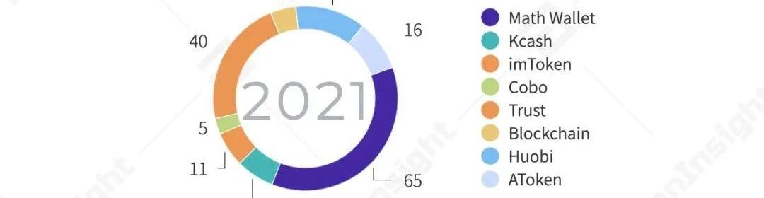 各钱包对接公链数量,来源:TokenInsight随着各个公链生态逐渐完善,钱包平台对对接的公链数量也相比19年呈倍数增长。在TokenInsight调研的数据中,19年时平均钱包公链支持数量为4条,2020年底此数据增长至23条。在数据统计时,各项钱包官网披露的公链数目较为模糊,TokenInsight采取枚举审核的方式,逐一确认在其App中确切的支持公链数目。其中支持数目最多的MathWallet也是19年时候支持公链最全的钱包。