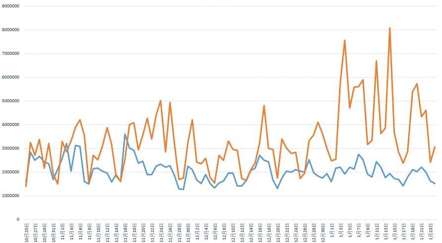 另一方面,随着比特币开启调整,DeFi代币和以太坊开始走强。以太坊的市值占比自10%上升到15%,Uni、Sushi等DeFi代币同样有较大的涨幅,DeF项目总市值突破400亿美金,创下历史新高。链上数据比特币单周的交易量1327.93万BTC,环比上升0.44%;而以太坊的链上交易量为2844.98万ETH,环比下降8.68%。