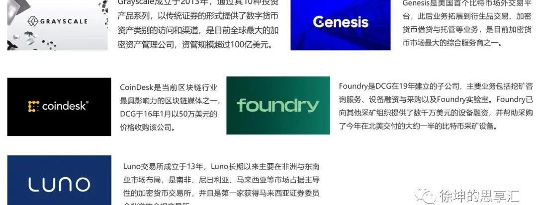 灰度的创始人BarrySilbert从2012年开始个人投资比特币,在13年投资了Coinbase、Bitpay、Ripple等如今的加密巨头,并于同年直接推动其于2004年创立的私募股权交易平台SecondMarket成立了如今比特币信托公司Grayscale以及比特币场外交易平台GenesisTrading的雏形部门,2015年SecondMarket被纳斯达克收购,但保留了加密资产相关业务。2015年,BarrySilbert将这两大业务与个人的投资业务进行整合成立了DCG,目前DCG有五家子公司,还直接投资160多家加密货币与区块链相关公司。