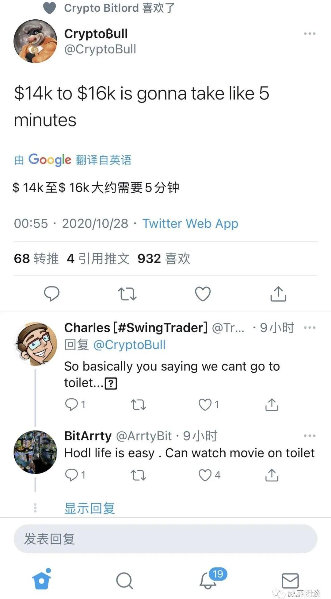编者按:本文来自威廉闲谈,作者:陳威廉,Odaily星球日报经授权转载。比特币持续新高中,离2019年的最高点也就一步之遥了,可能你们看到这篇文章的时候已经迈过去了。一万四其实只是心理门槛而已,要过去也挺快的,问题不大。今年的上涨与之前数年相比有一个最大的特点,就是稳的不行。没有哪一天涨特别多,也没有哪一天有特别大的回调,超过10%的波动好像都很少见到了,20%更是难得一见。以前大饼上涨,大家还会客气地问问“是圈外的钱还是圈内的钱在拉”,今年大家都没问过这个问题了,因为大家都知道,都是圈外的钱。圈内哪还有钱,defi折腾一轮之后,发现散户的钱都被交易所和矿工给赚走了。他们赚了钱干啥去了?买大饼去了。殊途同归。所以大家能感觉到比特币上涨过程中,国内市场的冷清,是真的很冷清。不止是我感觉到了冷清,很多人也都有这个感觉,随便截图几张: