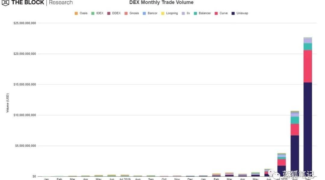 DEX的9月交易量突破235亿美元。整个DEX领域在过去一年时间,确切来说,主要是过去6个月时间内,其交易额接近于500亿美元。一直以来,人们在探讨DEX会不会成为CEX的竞争对手。如果在几个月前人们还有争议,而现在它已经成为现实,目前Uniswap的交易量已经超过了Coinbase。