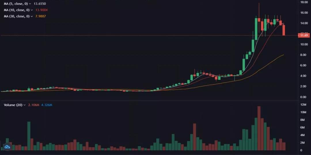 BAND价格在八月份开始展现出指数级的增长趋势,价格从8月1日的4.03美元涨到了8月10日的17.78美元/枚,10日内涨幅高达341.19%。与此同时其日交易量亦翻倍提升,从年初的350万元/天,增长460倍至如今16.2亿元/天的水平。