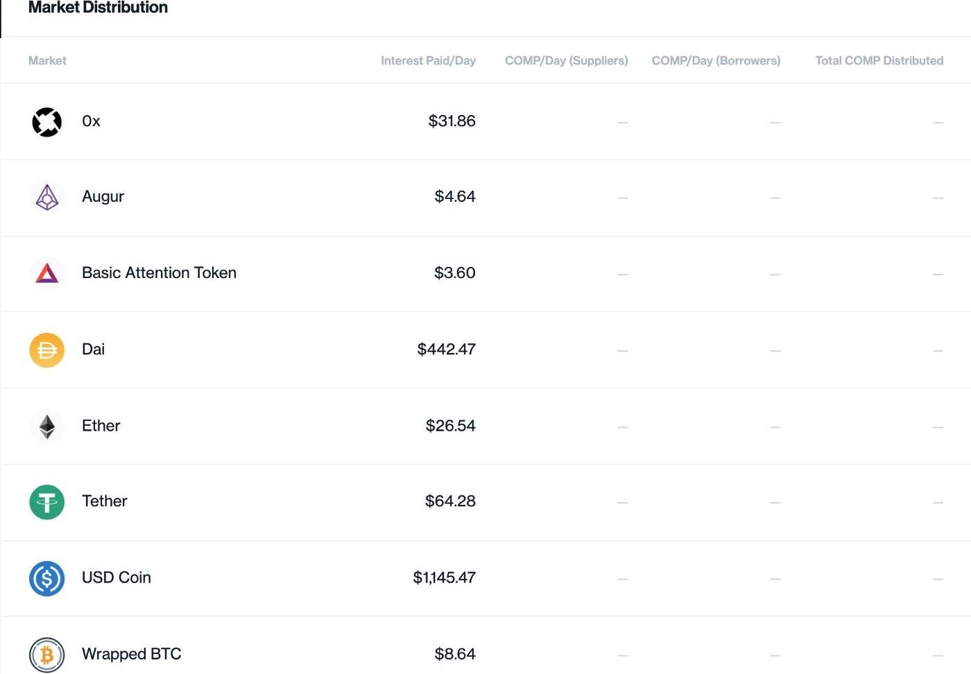 根据COMP的分配计划,贷款供应方和借款人,每1个以太坊区块会获得0.5COMP。以每COMP代币15美元的价格计算,分配给Compound用户的价值是15*2880=43200美元。每天43200美元似乎不是个大数目。然而,根据COMPDashboard的数据显示,Compound所有市场每天支付的利息总额仅为1727.5美元。这相当于是正常利息激励的25倍!那这意味着什么?对借款人来说,这意味着他们每天支付1727.5美元的利息,但能够每天赚取到21,600美元。而对于供应方来说,这意味着他们的贷款利率将增长12.5倍。例如,对于USDT,贷款利率可能高达25%,而当前的利率约为2%。有没有其他的借贷平台,能与这样的回报率相媲美的?也就是说,通过COMP代币的发行计划,Compound将有效地增强其加密借贷平台。虚幻的增长