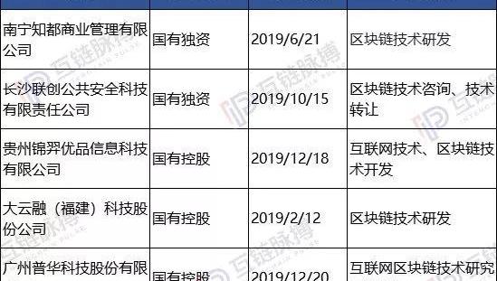 进而观察区块链企业的参保人数,检索2019年成立的以“区块链”为经营范围的公司,所有公司的参保人数都小于50人。而若从历年成立的全部区块链公司来观察,参保人数小于50人的有32622家,占到总比重的99.65%。参保人数在50人到499人之间的企业仅100余家。而参保人数在500人到999人之间的仅1家,是平安旗下的金融科技服务公司—深圳壹账通智能科技有限公司,平安壹账通有在打造区块链应用的基础设施平台;参保人数在1000人到4999人之间的有1家,是广州普邦园林股份有限公司,该公司是老牌园林工程施工、景观设计上市公司,旗下全资子公司北京博睿赛思的境外全资子公司曾与新加坡拓扑基金会,在区块链技术应用于数字化营销领域展开合作。尽管企业注册资本、企业参保人数两组数据,对区块链公司的展现不尽完全,但可以侧面的观察到,目前成立的区块链公司仍以中小型企业为主。涉及区块链业务的大型企业,也少有主攻区块链方向。不过,互链脉搏观察到,目前为止的32736家区块链公司中,已有11家是将区块链列入经营范围的国企。且其数量呈逐渐增长的态势,2005年、2017年成立的涉及区块链的分别有1家,2018年成立的有4家,2019年成立的有5家。同时,2019年成立的5家国企,在区块链方面的主要经营方向是区块链技术研发。