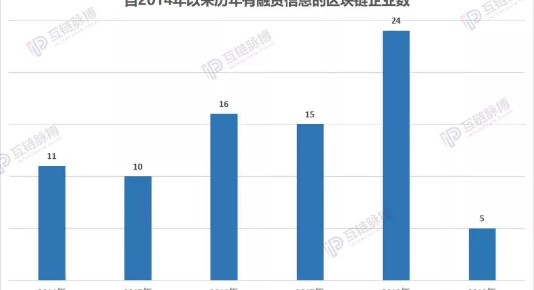 从地域、行业等维度对2019年的区块链企业进行分析后,互链脉搏还关注到了区块链企业的不同发展阶段,以及不同发展路径。在目前为止全部区块链公司中,有融资信息的是107家。其中2018年成立的区块链企业有融资信息的最多,共有24家;而2019年成立的区块链公司中有融资信息的仅5家。