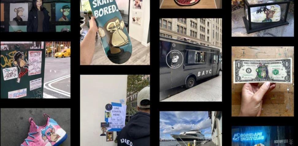 于是大量延伸的作品很快诞生了。穿的、玩的、看的、甚至是还有吃的,涵盖娱乐、音乐、时尚、游戏和虚拟世界在内的多个领域。团队还资助其中使用猿猴IP的创业者,鼓励他们发挥创造力,扩大品牌影响。而这种自下而上的方法,让每个使用猿猴形象做自己商业产品的人同时参与Yuga的品牌建设。一众社区成员都在通过各种方式给这个社区和品牌赋能,就像一个社区版的Supreme,创造着自己的文化。