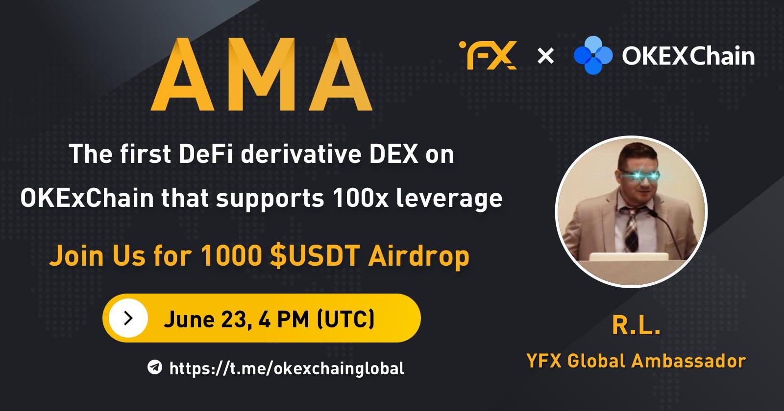 1.YFX.COM&OEC面向全球用户发起“OEC上唯一的DeFi跨链衍生品DEX”为主题的AMA问题征集活动,并派送$1000空投福利回馈给社区支持者,超500人互动留言提出问题。