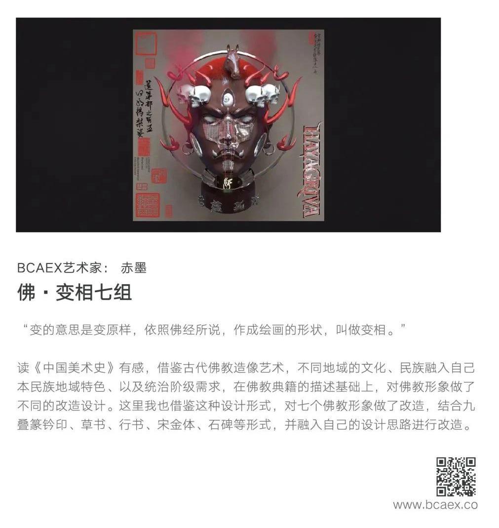 现场还展出了两件由线上NFT实体化而来的雕塑《未来仏》,该系列作品将东方宗教文化及赛博朋克美学演绎到极致,这是BCAEX合作数字艺术家大悲宇宙的经典之作,他擅长通过人机协同美学,打造极尽精美、清晰超然的虚拟世界,除了以数字载体为媒介呈现的作品外,他的每件雕塑作品也都会对应一个链上的NFT资产。