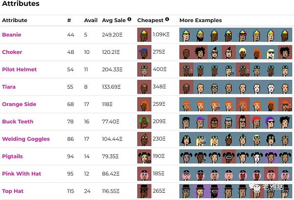 每个朋克类型都是用各种属性来装扮的。属性越常见,朋克的价值就越低,但也有一些例外。