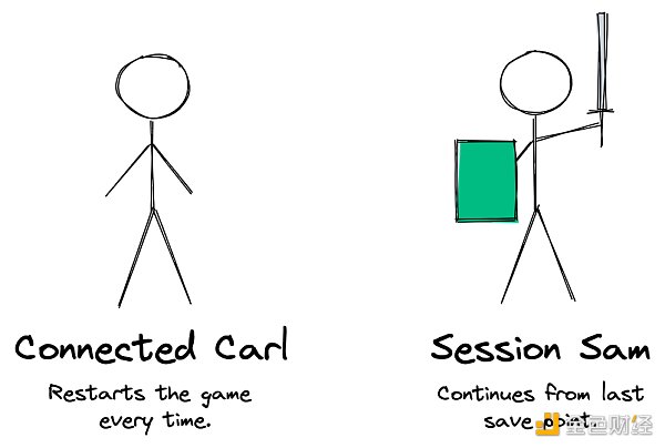 Carl 正在考虑如果 Uniswap 自动导入他的清算偏好,Aave 记住他最喜欢的借贷市场,甚至 OpenSea 记住他的名字而不是 0x2Fe1a3... 帐户,他的体验会好多少。每次连接钱包时,Carl都必须从第一格重新开始。