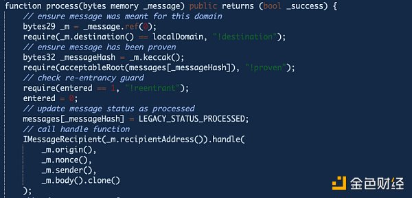 Nomad 此次被攻击是由于跨链桥的配置导致可以通过特定路径发送任何事务,错误在于 Replica 内部的「process」功能。出问题的「process」功能被设计为保证信息被证明,然后处理信息,通常情况下这个过程没有问题。