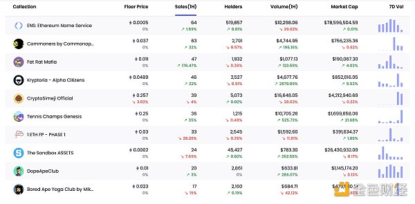 24小时内销售涨幅前十的NFT 数据来源:NFTGO