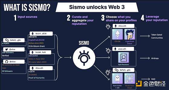 Sismo 就是致力于此的项目之一,它是一个用户体验友好的 Web3 身份管理系统,基于依赖零知识证明的元数据加密证明。用户可以通过 Sismo 管理来自其 ETH 地址和 Web2 社交档案的元数据集合,通过作为游戏证明的 NFT 徽章选择性地展示信息。