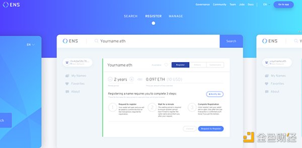 前者是拥有、创建和修改用户顶级域名和子域名的智能合约,后者负责识别用户名并将其转换为标准ETH 地址。