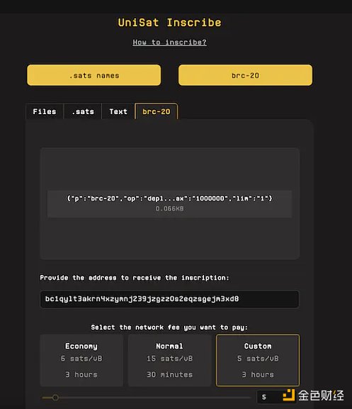 步骤3:输入你的比特币地址以接收BRC-20并选择网络费用