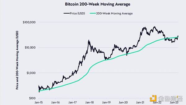 三、比特币基本面走强比特币高于 200 周移动平均线收盘