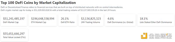 1、DeFi代币总市值:518.55亿美元