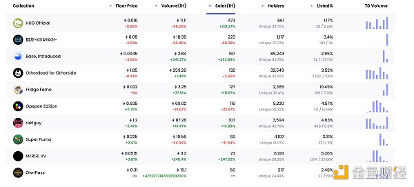 24小时内销售前十的NFT 数据来源:NFTGO