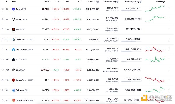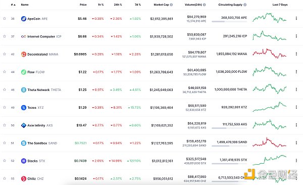 24小时NFT交易量、交易量前十项目 数据来源:Coinmarketcap