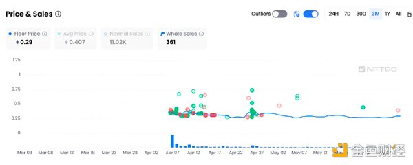 根据 NFTGo 数据,本月的交易量峰值出现在 5 月 2 日,其次是 5 月 10 日,每天大概有 50 笔交易,而在 5 月 20 日达到最低点。