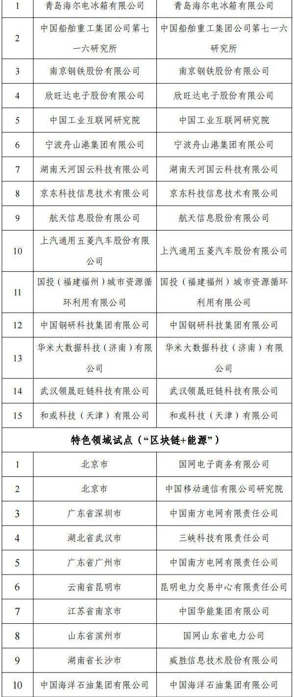 2022年1月30日消息,为深入开展区块链创新应用工作,中央网信办秘书局、中央宣传部办公厅、最高人民法院办公厅、最高人民检察院办公厅、教育部办公厅、工业和信息化部办公厅、民政部办公厅、司法部办公厅、人力资源社会保障部办公厅、国家卫生健康委办公厅、中国人民银行办公厅、税务总局办公厅、中国银保监会办公厅、中国证监会办公厅、国家能源局综合司、国家外汇局综合司近日联合印发通知,公布经地方和部门推荐、专家评审、网上公示等程序确定的15个综合性和164个特色领域国家区块链创新应用试点名单。