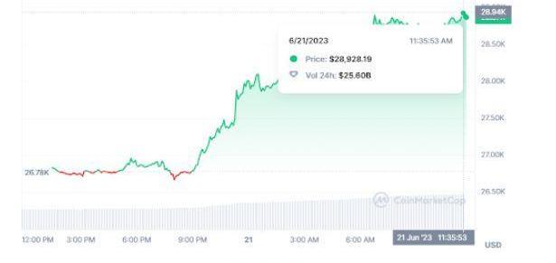 在撰写本文时,比特币交易价格为28,811美元,交易量为260亿美元,涨幅超过75%。
