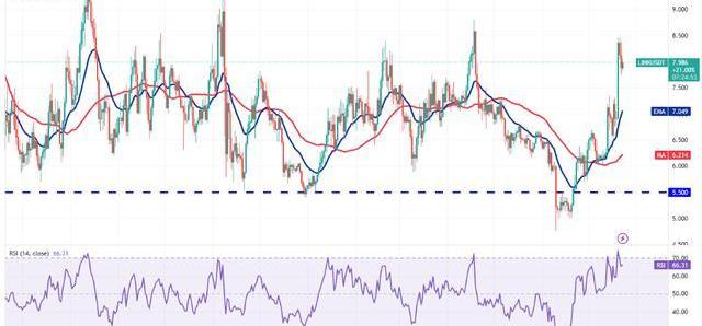 经历几天的上涨,知名去中心化预言机项目$LINK的价格,已经达到近几个月以来的高峰。从日K线走势来看,若能突破8.5-8.8美元阻力,则有望继续挑战9.5美元高位,而下方需要关注的重要支撑位是7.5美元,再来则是20日均线位置,即7.05美元附近。