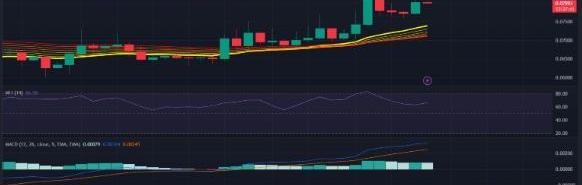 看一下DOGE的日线图,我们就看到了美好日子的希望,因为几个指标都看涨。指数移动平均线带显示出看涨交叉。
