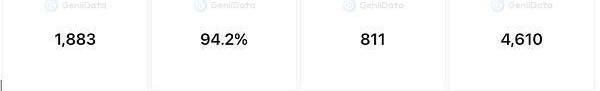 根据GeniiData数据显示,目前为止已经有1883个在市场流通,流通占比为94%,目前流通的1883个NFT存放在811个ID手中,当前的交易频次为4610次。
