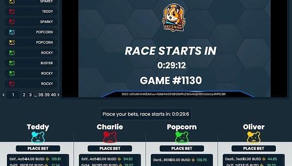 比赛每隔固定的时间开始,每次将四只仓鼠放入定制比赛轨道中,开始后将自动打每个轨道开阀门,先跑到终点的仓鼠为胜利。开始比赛前,有兴趣下注的人可以在比赛开始前使用BUSD进行下注,虽然存款可以接受以太坊或币安智能链,但支付似乎完全依赖BSC。
