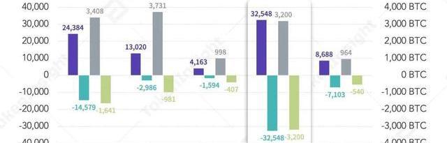 从交易所来看,Bitfinex和Coinbase买卖单需求差异较大;其中Bitfinex买单需求尤高,买单笔数为卖单的4.36倍,而买单成交量为卖单的3.81倍。值得注意的是,Huobi的数据显示,其多空双向成交笔数均为32,548笔,而且每个档位的多空双向交易笔数、单笔最大成交BTC数量均相同。