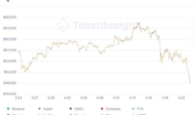 近30日比特币价格波动,截至4月23日18:00,来源:tokeninsight.com