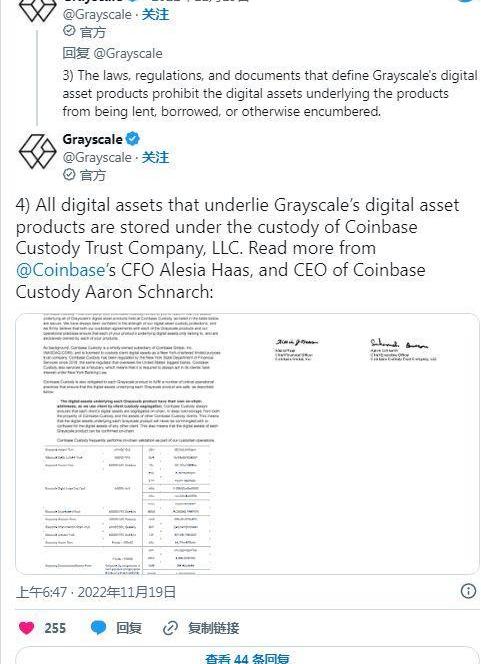 灰度在今天的一份声明中驳斥了这些担忧。根据Grayscale的说法,该公司投资产品的所有数字资产都存储在CoinbaseCustody中,由GBTC单独拥有。“非常清楚:BTC基础灰度比特币信托由GBTC和GBTC单独。”