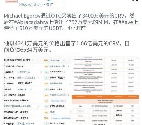 据Lookonchain数据显示,自从影响Curve的“重入黑客”事件以来,该高管已以4241万美元的价格出售了总计1.06亿枚CRV,目前负债6534万美元。