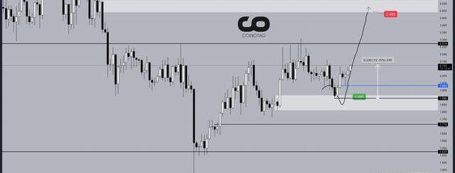 如果DYDX价格无法突破2.18美元阻力位,则可能会继续下跌直至2美元水平。如果价格在4小时内收盘价低于2美元,则可能会进一步下跌至1.98美元的水平。