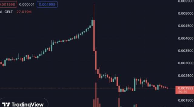 2月27日,区块链游戏Celestial代币CELT连续多日飙升后,突然晚间直线跳水,由最高0.00538美元暴跌至0.00166美元,暴跌最高超过69%,再度上演超级玛丽大跳水,并引发连环效应