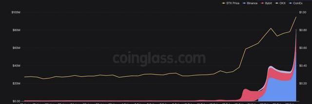 根据Coinglass的数据,STX的未平仓合约已跃升至8,500万美元。
